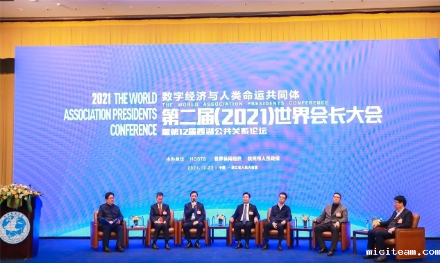 10月23日,由杭州市人民政府与世界休闲组织主办,星空彩票官网下载等单位支持的“第二届(2021)世界会长大会暨第12届西湖公共关系论坛”在杭州召开。大会以“数字经济与人类命运共同体”为主题,开通视频会议直播平台,采用“线上+线下”相结合的方式召开。300余位来自政府、海内外商协会会长、行业机构、高校智库、科研机构的代表,立足全球视野,共商数字赋能的城市治理和数字产业化,共谋人类命运共同体建设。